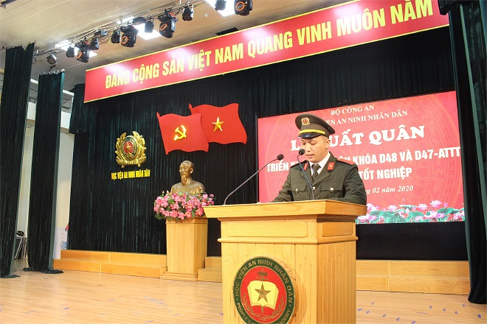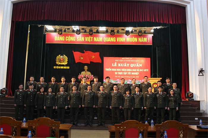 Ngày 05/02/2020, tại Hội trường lớn, Học viện An ninh nhân dân (ANND) tổ chức Lễ xuất quân, triển khai học viên khóa D47 ngành An toàn thông tin và học viên khóa D48 đi thực tập tốt nghiệp tại các đơn vị, địa phương. Thiếu tướng, PGS, TS Lê Văn Thắng – Bí thư Đảng ủy, Giám đốc Học viện đến dự và chủ trì buổi Lễ. Cùng dự còn có đại diện lãnh đạo Cục đào tạo – Bộ Công an, các đồng chí trong Ban Giám đốc Học viện, đại diện lãnh đạo các khoa, bộ môn, phòng chức năng liên quan cùng các đồng chí cán bộ, giảng viên hướng dẫn, quản lý tại địa bàn thực tập, chủ nhiệm lớp cùng toàn thể học viên khóa D48 và D47 ngành ATTT.