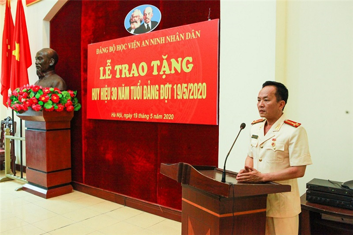Trong không khí trang nghiêm và xúc động của toàn Đảng, toàn dân và toàn quân ta thiết thực kỷ niệm 130 năm Ngày sinh Chủ tịch Hồ Chí Minh vĩ đại (19/5/1890 - 19/5/2020), chiều 19/5/2019, tại Hội trường 301 Nhà 3, Đảng ủy Học viện An ninh nhân dân tổ chức trọng thể Lễ trao tặng Huy hiệu Đảng đợt 19/5/2020. Đồng chí Thiếu tướng, PGS. TS Lê Văn Thắng - Bí thư Đảng ủy, Giám đốc Học viện chủ trì buổi lễ. Tham dự buổi Lễ có các đồng chí trong Đảng ủy, Ban Giám đốc Học viện; Uỷ ban kiểm tra Đảng ủy Học viện; đại diện cấp ủy các đảng bộ, chi bộ cơ sở trực thuộc Đảng ủy Học viện; Bí thư Đoàn Thanh niên, Chủ tịch Hội Phụ nữ, Chủ tịch Công đoàn Học viện; đảng viên chi bộ Khoa An ninh điều tra; Đảng ủy Văn phòng Học viện; cấp ủy các chi bộ trực thuộc Văn phòng Học viện.