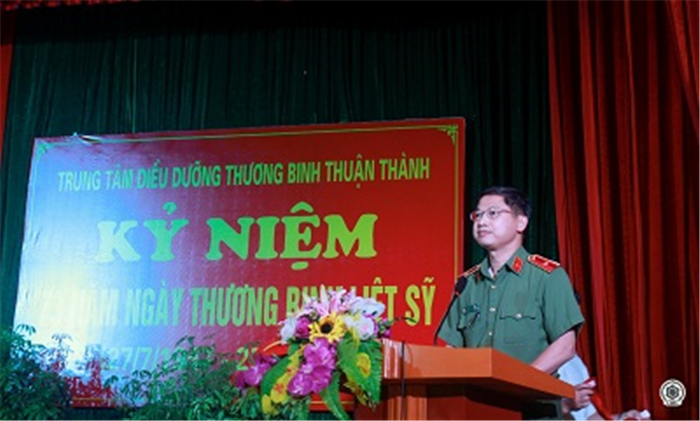 Thay mặt Trung tâm điều dưỡng thương binh huyện Thuận Thành - Bắc Ninh, đồng chí Nguyễn Khắc Dư cảm ơn sự quan tâm của Học viện ANND đối với hoạt động “đền ơn đáp nghĩa” dành cho các thương, bệnh binh đang điều dưỡng tại Trung tâm.