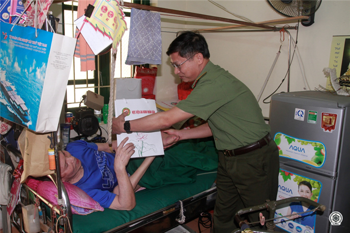 Thiếu tướng, PGS.TS Trần Anh Vũ - Phó Giám đốc Học viện đại diện Đoàn công tác trao quà cho thương binh