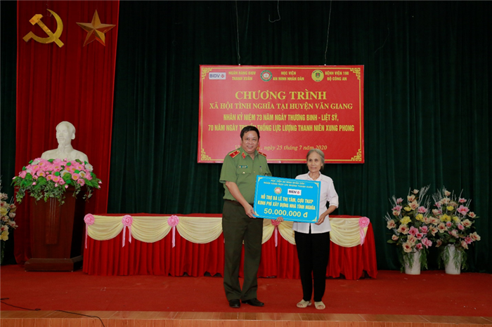 Tại Hưng Yên, Đoàn công tác Học viện do Thiếu tướng, PGS.TS Lê Văn Thắng - Bí thư Đảng ủy, Giám đốc Học viện dẫn đầu đã đến dâng hương tưởng niệm tại Đền Liệt sĩ Tô Hiệu; thăm hỏi, tặng quà 03 Mẹ Việt Nam anh hùng tại huyện Văn Giang và Nghĩa Trụ, Hưng Yên. Đặc biệt, kỷ niệm 70 năm Ngày Chủ tịch Hồ Chí Minh sáng lập Hội Thanh niên xung phong (15/7/1950 - 15/7/2020), Học viện ANND phối hợp với Bệnh viện 198, Bộ Công an đã tổ chức chương trình Khám chữa bệnh và phát thuốc miễn phí cho các thương, bệnh binh, cựu thanh niên xung phong trên địa bàn huyện Văn Giang; phối hợp với Ngân hàng Đầu tư và phát triển (BIDV) chi nhánh Thanh Xuân trao tặng nhà tình nghĩa cho 01 Mẹ Việt Nam anh hùng có hoàn cảnh khó khăn; đồng thời, tặng 20 phần quà cho cựu thanh niên xung phong tại huyện Văn Giang. Cũng trong chuỗi các hoạt động ý nghĩa tại Hưng Yên, Đoàn Thanh niên Học viện phối hợp với Huyện Đoàn Văn Giang tổ chức chương trình Thắp nến tri ân và thả đèn hoa đăng tại Đài Liệt sĩ huyện Văn Giang.
