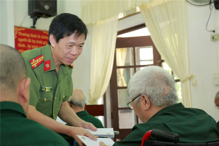 Đồng chí Thiếu tướng, PGS.TS Trần Anh Vũ - Phó Giám đốc Học viện thay mặt cho toàn thể lãnh đạo, cán bộ, giảng viên, học viên Học viện xúc động bày tỏ tình cảm tri ân, sự biết ơn sâu sắc đối với những công lao và sự hi sinh to lớn của các anh hùng, liệt sĩ; đặc biệt là các thương, bệnh binh đã dũng cảm chiến đấu và bảo vệ nền độc lập, tự do cho Tổ quốc. Đồng thời, đồng chí Phó Giám đốc Học viện đã trao 03 phần quà cho 02 thương binh nặng và đại diện Trung tâm điều dưỡng.