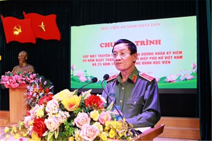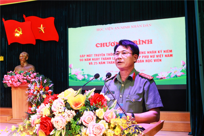 Phát biểu tại buổi gặp mặt truyền thống, Thiếu tướng, PGS.TS Lê Ngọc An nhấn mạnh: Đồng hành với sự phát triển của Học viện, trong từng thời kỳ, Hội Phụ nữ, Công đoàn Học viện ANND đã hoàn thành xuất sắc nhiệm vụ được giao, góp phần không nhỏ vào những thành tích chung của Học viện. Đảng ủy, Ban Giám đốc mong rằng các đồng chí trong Ban chấp hành Hội Phụ nữ, Công đoàn Học viện tiếp tục phát huy truyền thống từ các thế hệ đi trước, đoàn kết, đổi mới, chủ động, sáng tạo để xây dựng Hội Phụ nữ, Công đoàn Học viện ngày càng vững mạnh.