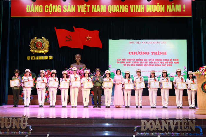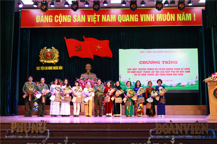 Trong không khí phấn khởi, vui mừng chào đón năm học mới 2020-2021, thi đua lập thành tích xuất sắc hướng tới chào mừng Đại hội Đảng toàn quốc lần thứ XIII và kỷ niệm 75 năm ngày truyền thống Học viện ANND; nhân kỷ niệm 90 năm ngày thành lập Hội Liên hiệp Phụ nữ Việt Nam (20/10/20190 - 20/10/2020) và 25 năm ngày thành lập Công đoàn Học viện ANND (16/10/1995-16/10/2020), chiều 19/10, tại Hà Nội, Học viện An ninh nhân dân (ANND) đã tổ chức chương trình gặp mặt truyển thống các thế hệ cán bộ làm công tác Công đoàn, Hội phụ nữ và tuyên dương hội viên, đoàn viên xuất sắc, tiêu biểu giai đoạn 2015-2020. Đồng chí Thiếu tướng, PGS.TS Lê Ngọc An - Phó Bí thư Đảng ủy, Phó Giám đốc Học viện dự và chủ trì buổi Lễ.