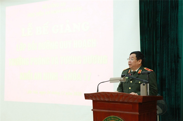 Sáng 25/12, Học viện An ninh nhân dân đã tổ chức Lễ Bế giảng lớp bồi dưỡng quy hoạch Trưởng phòng và tương đương khối An ninh khóa 17. Thiếu tướng, PGS.TS Lê Văn Thắng - Bí thư Đảng ủy, Giám đốc Học viện dự và chủ trì Buổi Lễ. Tham dự Lễ Bế giảng, còn có đại diện lãnh đạo Cục Đào tạo, Bộ Công an; đại diện lãnh đạo các đơn vị thuộc Học viện cùng toàn thể học viên khóa học.