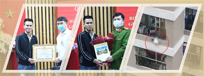 Trong khoảnh khắc cực kỳ nguy hiểm, như một bản năng, một mệnh lệnh cứu người thôi thúc, anh đã nhanh chóng lao qua bức tường cao 2 mét, điều mà sau này chính anh cũng cho biết không thể ngờ mình nhảy cao như thế, trèo lên mái che của sảnh tầng 1 để chờ sẵn.