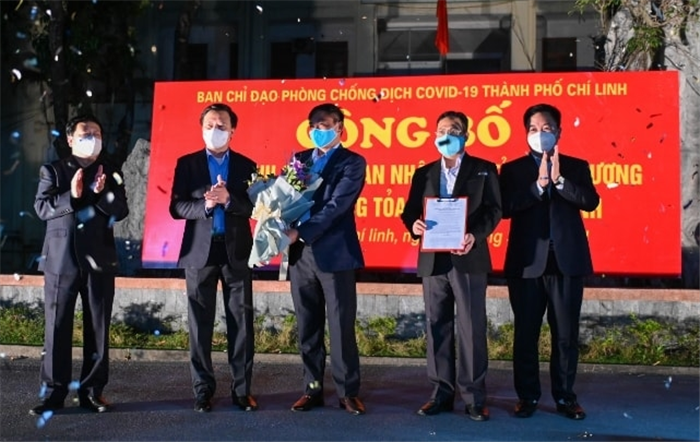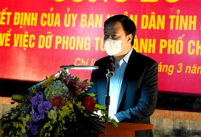 Đồng chí Phạm Xuân Thăng, Ủy viên Trung ương Đảng, Bí thư Tỉnh ủy Hải Dương công bố dỡ bỏ cách ly xã hội toàn tỉnh và dỡ bỏ phong tỏa thành phố Chí Linh.
