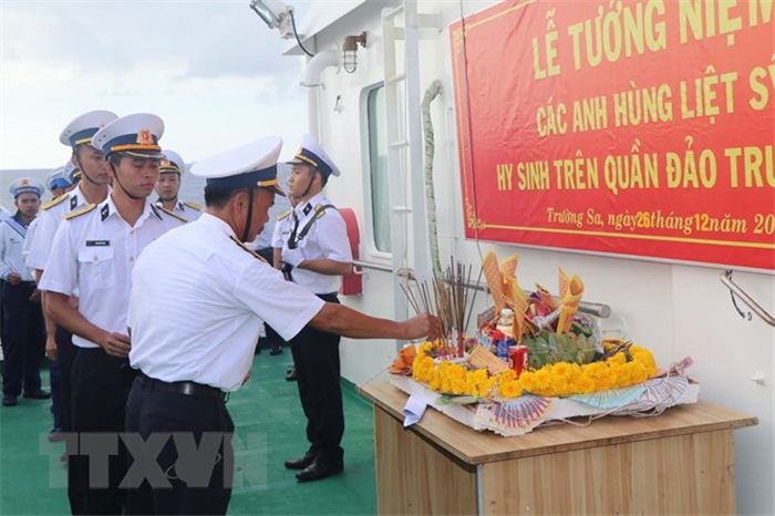 Đã thành thông lệ, bất cứ tàu hải quân nào đi qua vùng biển Gạc Ma, Cô Lin, Len Đao đều tổ chức lễ viếng và thả hoa tưởng niệm 64 liệt sỹ trong cuộc chiến đấu bảo vệ chủ quyền biển đảo Tổ quốc năm 1988.