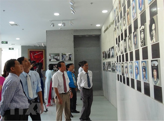 Người dân và du khách tham quan Bảo tàng ngầm - nơi lưu giữ những hiện vật liên quan đến cuộc đời và thân nhân của 64 chiến sỹ hy sinh tại Gạc Ma năm xưa, tại Khu Tưởng niệm chiến sỹ Gạc Ma ở xã Cam Hải Đông, huyện Cam Lâm (tỉnh Khánh Hòa).