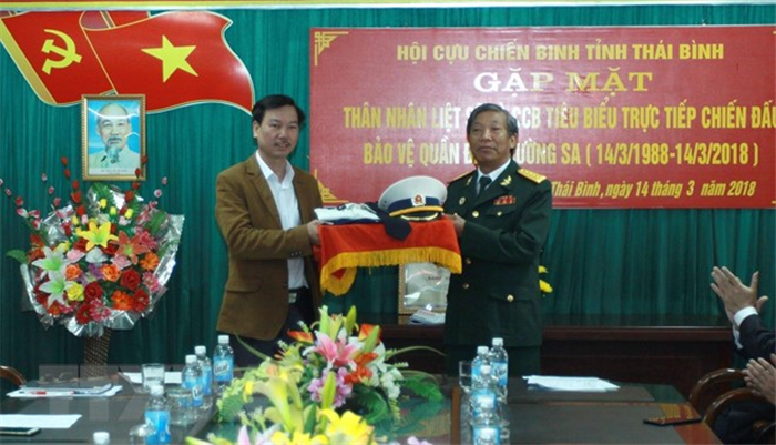 Cựu chiến binh Vũ Huy Lễ, Anh hùng lực lượng vũ trang nhân dân, thuyền trưởng tàu HQ-505 trong trận chiến đấu bảo vệ chủ quyền Tổ quốc ở đá Gạc Ma năm 1988, trao lại bộ quân phục của mình cho Bảo tàng Thái Bình.