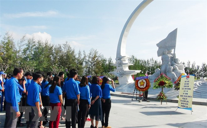 Đoàn viên thanh niên tỉnh Khánh Hòa dâng hương tại Khu Tưởng niệm chiến sỹ Gạc Ma ở xã Cam Hải Đông, huyện Cam Lâm (tỉnh Khánh Hòa).