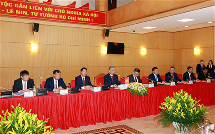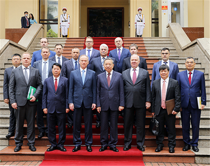 Bộ trưởng Tô Lâm đánh giá cao chuyến thăm của Thư ký Hội đồng An ninh Liên bang Nga Patrushev Nikolai Platonovich trong bối cảnh đại dịch COVID-19 diễn biến phức tạp; khẳng định chuyến thăm và làm việc của Đoàn đại biểu cấp cao Hội đồng An ninh Liên bang Nga sẽ góp phần làm sâu sắc thêm quan hệ truyền thống gắn bó giữa Bộ Công an Việt Nam với các cơ quan thực thi pháp luật Liên bang Nga nói riêng và quan hệ Đối tác chiến lược toàn diện Việt Nam - Liên bang Nga nói chung.