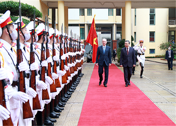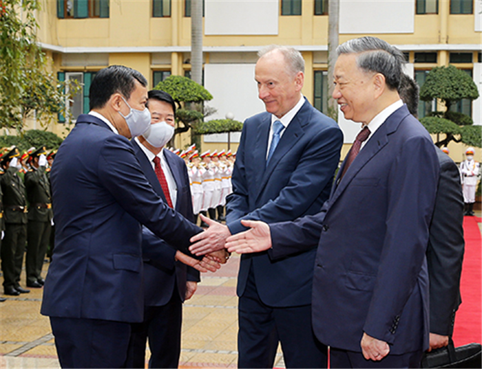 Sáng 16/3 tại Hà Nội, Bộ trưởng Tô Lâm đã chủ trì Lễ đón chính thức Đoàn đại biểu cấp cao Hội đồng An ninh Liên bang Nga. Ngay sau đó, Bộ trưởng Tô Lâm dẫn đầu Đoàn đại biểu cấp cao Bộ Công an Việt Nam và Đại tướng Patrushev Nikolai Platonovich dẫn đầu Đoàn đại biểu cấp cao Hội đồng An ninh Liên bang Nga tổ chức Hội đàm.