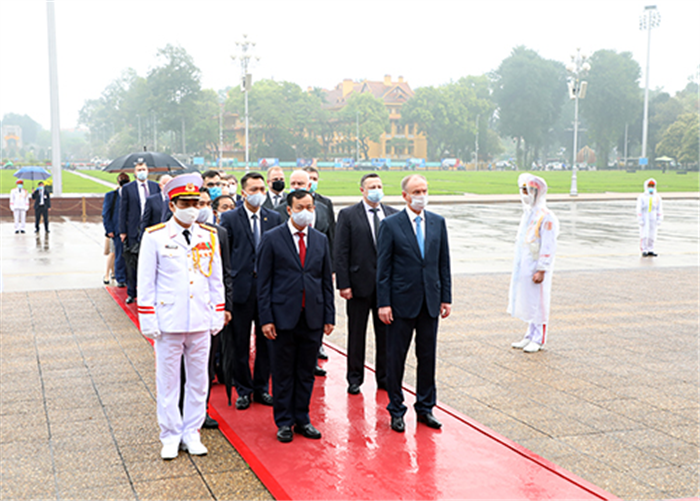 Trước đó, sáng cùng ngày, Đại tướng Patrushev Nikolai Platonovich và Đoàn đại biểu cấp cao Hội đồng An ninh Liên bang Nga đã đặt vòng hoa vào Lăng viếng Chủ tịch Hồ Chí Minh và Đài tượng niệm các Anh hùng liệt sỹ.