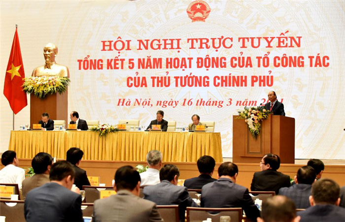 Sáng 16-3, tại Trụ sở Chính phủ, Thủ tướng Nguyễn Xuân Phúc chủ trì Hội nghị trực tuyến tổng kết 5 năm hoạt động Tổ công tác của Thủ tướng Chính phủ.