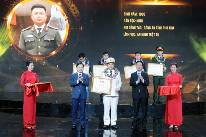 Trong đó, hai gương mặt thanh niên CAND tiêu biểu là Đại úy Nguyễn Trung Đức, Công an tỉnh Phú Thọ được vinh danh trên lĩnh vực ANTT, lập nhiều thành tích trong điều tra, xác minh, xử lý nhiều vụ việc liên quan đến trật tự quản lý kinh tế; Trung sĩ Tống Văn Đông, Phòng Cảnh sát PCCC&CNCH, Công an tỉnh Thanh Hóa được vinh danh là gương mặt trẻ Việt Nam triển vọng trong lĩnh vực an ninh trật tự - chàng trai trẻ được Nhân dân biết đến khi bất chấp hiểm nguy, xả thân cứu người giữa ngọn lửa, tháo bình dưỡng khí nhường cho nạn nhân…