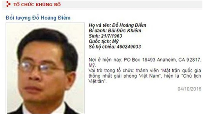 Đỗ Hoàng Điềm – kẻ tự xưng là Chủ tịch Việt Tân. Ảnh: thanhnien.vn |