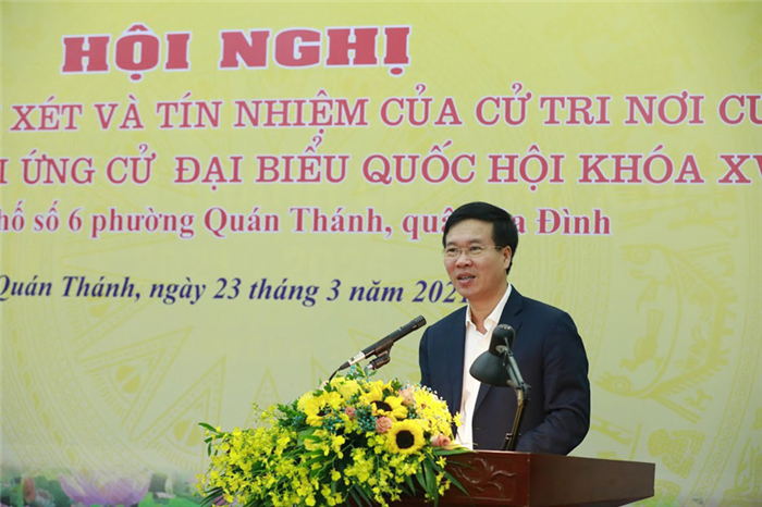 Thay mặt 09 đồng chí ứng cử phát biểu với cử tri, Thường trực Ban Bí thư Võ Văn Thưởng khẳng định, các đồng chí đều nhận thức sâu sắc rằng, được giới thiệu ra ứng cử đại biểu Quốc hội khóa XV là niềm vinh dự, đồng thời là trách nhiệm lớn. Vì cử tri cả nước luôn quan tâm, kỳ vọng, tin tưởng vào đại biểu Quốc hội nói chung, quan tâm, đòi hỏi cao đối với các đại biểu Quốc hội là Ủy viên Bộ Chính trị, Ủy viên Trung ương Đảng nói riêng; nhất là cuộc bầu cử được diễn ra ngay sau Đại hội đại biểu toàn quốc lần thứ XIII của Đảng, có nhiệm vụ thể chế hóa, đưa Nghị quyết của Đảng đi vào cuộc sống.