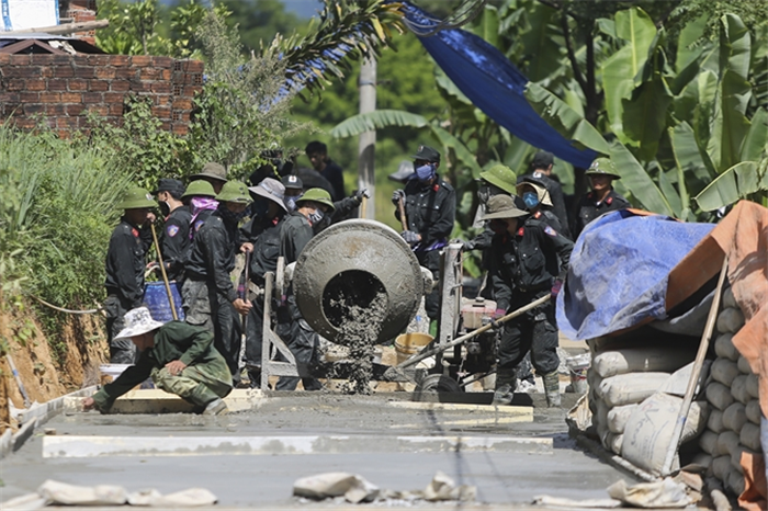 CBCS Tiểu đoàn Cảnh sát cơ động số 3 giúp nhân dân làm đường bê tông nông thôn mới. |