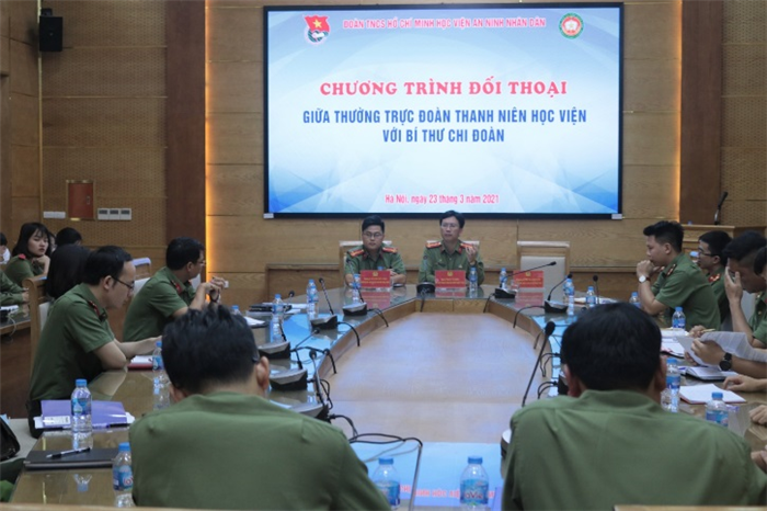 Nằm trong chuỗi các hoạt động thi đua sôi nổi lập thành tích chào mừng kỷ niệm 65 năm Ngày thành lập Đoàn Thanh niên Học viện, 75 năm Ngày truyền thống Học viện An ninh nhân dân, Đoàn Thanh niên Học viện ANND đã tổ chức Buổi đối thoại giữa Ban Thường vụ Đoàn Thanh niên với các Bí thư Chi đoàn, Bí thư Liên chi đoàn và Chủ nhiệm các câu lạc bộ trực thuộc Đoàn Thanh niên Học viện nhằm nâng cao hơn nữa hiệu quả thực hiện công tác Đoàn và phong trào thanh niên trong đoàn viên, thanh niên toàn Học viện.