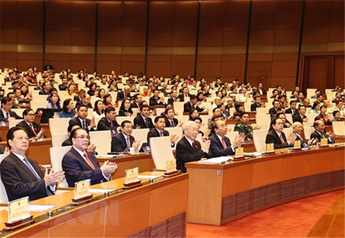 Các đồng chí lãnh đạo Đảng, Nhà nước và nguyên lãnh đạo Đảng, Nhà nước dự phiên khai mạc. Ảnh: TTXVN |