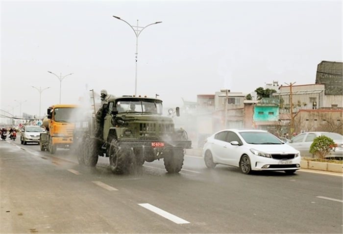 Bộ đội phòng hóa Quân khu 3 phun khử khuẩn phòng, chống Covid-19 |
