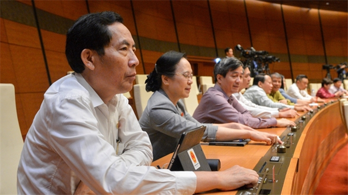 Các đại biểu bấm nút thông qua Nghị quyết |