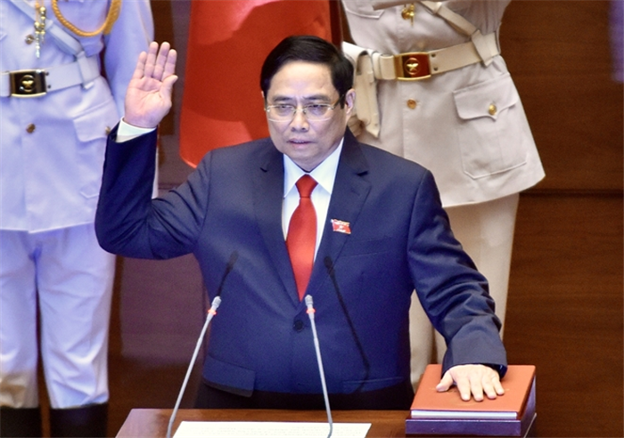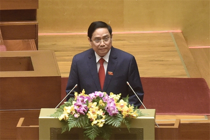 Phát biểu nhậm chức chiều 5/4, Thủ tướng Phạm Minh Chính trân trọng cảm ơn Quốc hội đã tín nhiệm bầu đồng chí giữ chức Thủ tướng Chính phủ nước Cộng hòa XHCN Việt Nam; khẳng định đây là vinh dự đối với cá nhân đồng chí, đồng thời cũng là trách nhiệm rất nặng nề mà Đảng, Nhà nước và Nhân dân tin tưởng giao phó.