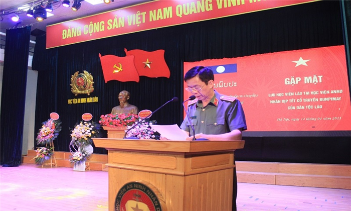 Phát biểu tại buổi Lễ chúc mừng nhân dịp Tết cổ truyền Bun-pi-may năm 2021, thay mặt Ban Giám đốc Học viện, đồng chí Thiếu tướng, TS Trần Kim Hải – Phó Giám đốc Học viện gửi lời chúc mừng năm mới tới các lưu học viên Lào đang theo học tại Học viện luôn mạnh khỏe, học tập tốt để đem những kiến thức, kỹ năng chuyên môn nghiệp vụ được học tập ở Học viện áp dụng có hiệu quả vào quá trình công tác thực tiễn, góp phần xây dựng đất nước Lào ngày càng vững mạnh, giàu đẹp; chúc cho mối quan hệ hữu nghị, đoàn kết, truyền thống đặc biệt giữa hai Đảng, hai Nhà nước và nhân dân Việt Nam - Lào ngày càng bền chặt.