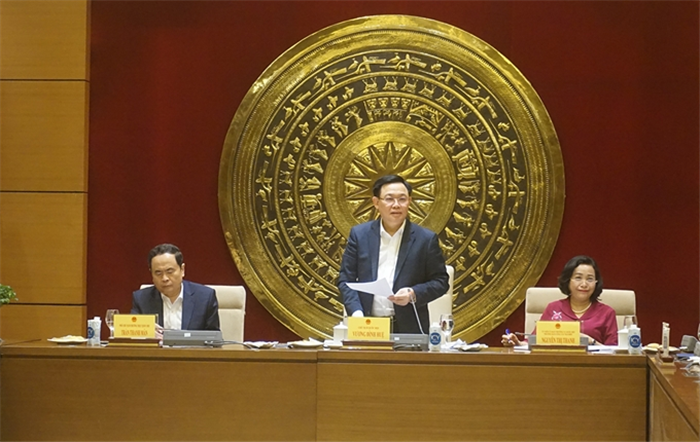 Chủ tịch Quốc hội Vương Đình Huệ phát biểu tại buổi làm việc. (Ảnh: QH) |