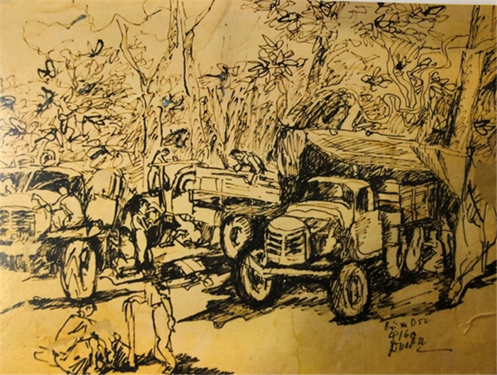 Bãi xe tiểu đoàn 52- Kí họa bút sắt |