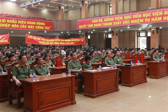 Lãnh đạo, cán bộ giảng viên Học viện ANND với các học viên tại lễ xuất quân |