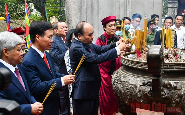 Tham dự lễ dâng hương có Chủ tịch nước Nguyễn Xuân Phúc; các đồng chí Ủy viên Bộ chính trị, Bí thư T.Ư Đảng: Võ Văn Thưởng, Thường trực Ban Bí thư; Trương Thị Mai, Trưởng Ban Tổ chức T.Ư; Đỗ Văn Chiến, Chủ tịch Ủy ban T.Ư MTTQ Việt Nam; các đồng chí nguyên Ủy viên Bộ Chính trị; lãnh đạo các Ban, Bộ, Ngành T.Ư, tỉnh Phú Thọ và đông đảo nhân dân.