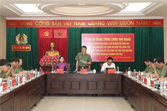 Ngày 27/4/2021, Đoàn kiểm tra công tác bảo đảm an ninh, trật tự (ANTT) bầu cử đại biểu Quốc hội khóa XV và đại biểu Hội đồng nhân dân các cấp nhiệm kỳ 2021 - 2026 (Cuộc bầu cử) của Bộ Công an do Trung tướng Lương Tam Quang, Ủy viên Trung ương Đảng, Thứ trưởng Bộ Công an, Trưởng Tiểu ban ANTT bầu cử đại biểu Quốc hội khóa XV và đại biểu Hội đồng nhân dân các cấp nhiệm kỳ 2021 - 2026 Bộ Công an làm Trưởng đoàn đã đến kiểm tra công tác tại Công an tỉnh Thái Nguyên và Công an 08 địa phương lân cận.
