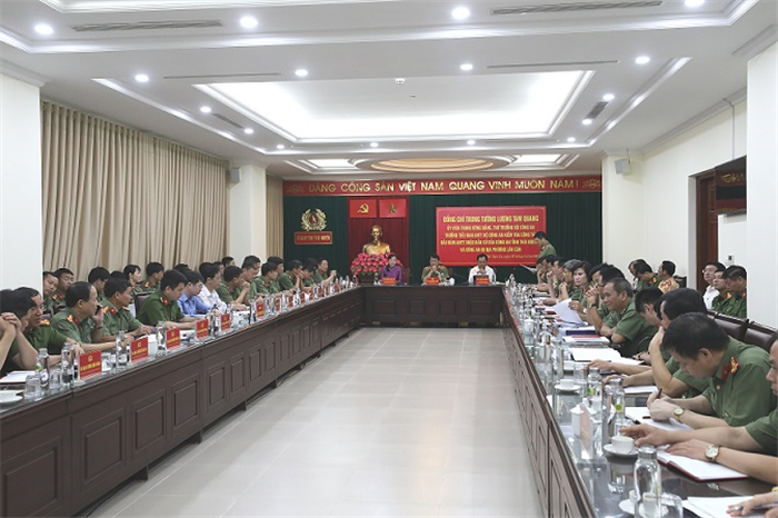 Dự buổi làm việc có các đồng chí: Nguyễn Thanh Hải, Ủy viên Trung ương Đảng, Bí thư Tỉnh ủy Thái Nguyên; Trịnh Việt Hùng, Ủy viên dự khuyết Ban Chấp hành Trung ương Đảng, Phó Bí thư Tỉnh ủy, Chủ tịch Ủy ban nhân dân tỉnh; đại diện lãnh đạo Công an một số đơn vị chức năng thuộc Bộ Công an; các cán bộ, lãnh đạo chủ chốt của Công an tỉnh Thái Nguyên và Công an 08 địa phương, gồm: Cao Bằng, Lạng Sơn, Bắc Kạn, Bắc Giang, Phú Thọ, Hà Giang, Vĩnh Phúc, Tuyên Quang.