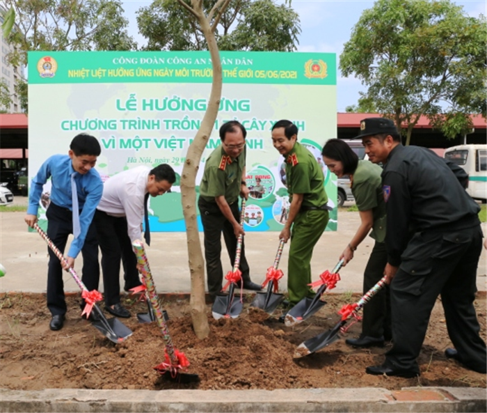 * Dịp này, để tiếp tục đẩy mạnh phong trào thi đua “Xanh - Sạch - Đẹp, bảo đảm an toàn, vệ sinh lao động, phòng, chống cháy nổ”, góp phần cải thiện môi trường làm việc tại cơ quan, đơn vị… BCH Công đoàn CAND đã tổ chức tham quan vườn cây Công đoàn và trồng cây hưởng ứng Chương trình trồng 01 tỷ cây xanh theo sáng kiến của Thủ tướng Chính phủ.