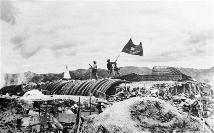 Sau 56 ngày đêm chiến đấu, hy sinh, gian khổ, quân và dân Việt Nam đã tiêu diệt toàn bộ Tập đoàn cứ điểm Điện Biên Phủ. Chiều ngày 7/5/1954, lá cờ "Quyết chiến, quyết thắng" tung bay trên nóc hầm De Castres |