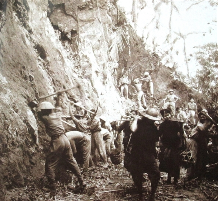 Dân công, thanh niên xung phong mở đường vào Điện Biên Phủ. |