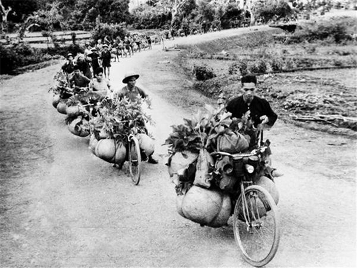 Sử dụng xe đạp thồ vượt qua những đường đèo hiểm trở, nơi xe cơ giới không thể đi qua, để vận chuyển vũ khí lương thực và nhu yếu phẩm tiếp tế cho các chiến sĩ ở mặt trận. |