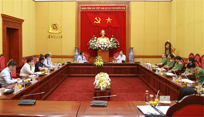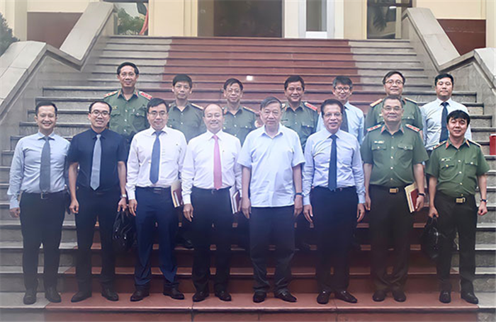 Bộ trưởng Tô Lâm, Thứ trưởng Bộ Ngoại giao Đặng Minh Khôi cùng các đại biểu dự buổi làm việc. |