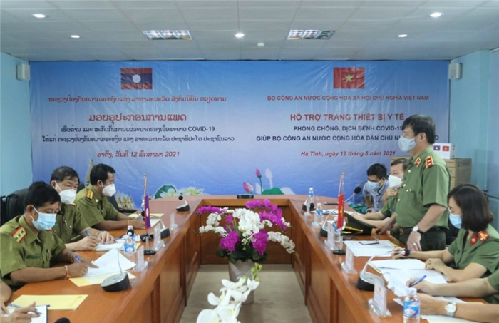 Thừa ủy quyền của Đại tướng Tô Lâm, Ủy viên Bộ Chính trị, Bộ trưởng Bộ Công an, sáng 12/5/2021, tại Cửa khẩu quốc tế Cầu Treo, tỉnh Hà Tĩnh, Đoàn công tác Bộ Công an do Trung tướng Nguyễn Thanh Sơn, Cục trưởng Cục Đối ngoại làm Trưởng đoàn đã tiến hành trao tặng thiết bị y tế phòng, chống dịch Covid-19 hỗ trợ Bộ Công an nước Cộng hòa Dân chủ Nhân dân Lào.