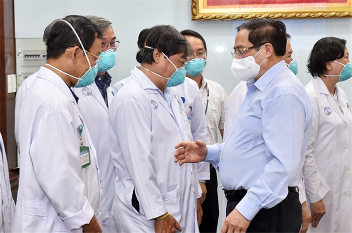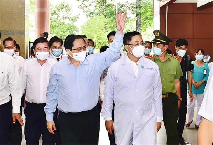 Chiều 13/5, tại TPHCM, Thủ tướng Phạm Minh Chính đã tới thăm, động viên các y, bác sĩ, điều dưỡng viên tại Bệnh viện đại học Y Dược TP HCM và Bệnh viện Chợ Rẫy. Họ là những chiến sĩ đang hy sinh và kiên cường ở tuyến đầu chống dịch vì sức khỏe nhân dân, vì lợi ích quốc gia dân tộc.