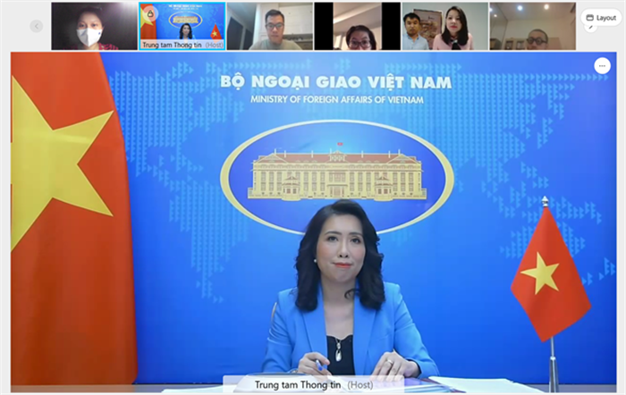 Buổi họp báo thường kỳ của Bộ Ngoại giao được tổ chức theo hình thức trực tuyến. |