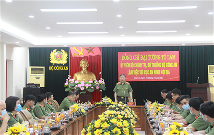 Cùng dự buổi làm việc có Trung tướng Lương Tam Quang, Uỷ viên Trung ương Đảng, Thứ trưởng Bộ Công an; Trung tướng Tô Ân Xô, Chánh Văn phòng Bộ Công an…