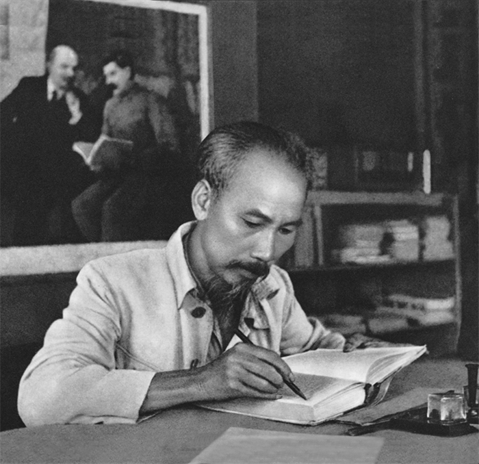 Chủ tịch Hồ Chí Minh là bậc thầy của phương pháp tư tưởng cách mạng và sáng tạo. Trong ảnh: Chủ tịch Hồ Chí Minh trong phòng làm việc của Người ở căn cứ Việt Bắc. |