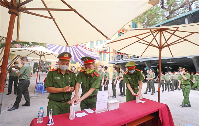 Công tác phòng, chống dịch bệnh Covid-19 được lực lượng Công an triển khai nghiêm túc tại các khu vực, điểm bỏ phiếu. |