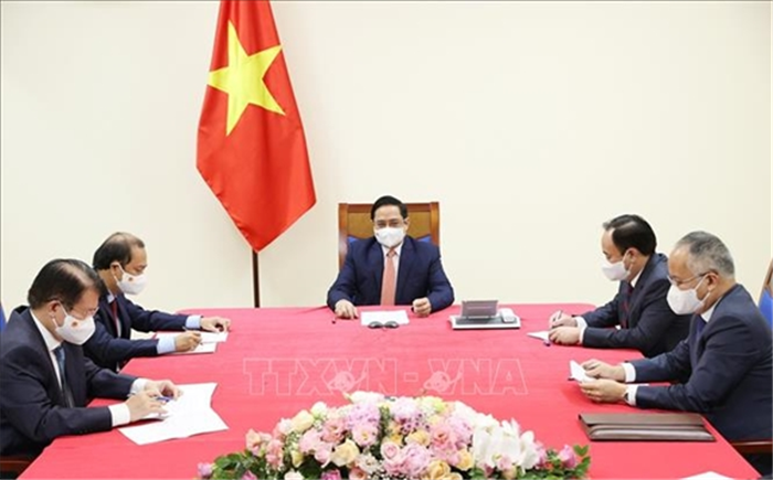 Thủ tướng Chính phủ Phạm Minh Chính cảm ơn Thủ tướng Australia và khẳng định sẵn sàng hợp tác chặt chẽ với Thủ tướng Australia để đưa quan hệ đối tác chiến lược Việt Nam-Australia ngày càng đi vào hiệu quả, chiều sâu và thực chất; đề nghị Australia tiếp tục hỗ trợ kỹ thuật và mở cửa thị trường hơn nữa cho một số nông sản và thủy sản Việt Nam; khuyến khích các doanh nghiệp lớn của Australia tăng cường đầu tư vào Việt Nam; tập trung ODA hỗ trợ Việt Nam trong các dự án hạ tầng, phát triển nông nghiệp, giảm nghèo, chống biến đổi khí hậu và đào tạo nguồn nhân lực chất lượng cao; thúc đẩy hợp tác trong các lĩnh vực quân y, hỗ trợ lực lượng gìn giữ hòa bình của Việt Nam; tiếp tục tạo thuận lợi cho cộng đồng người Việt và học sinh, sinh viên Việt Nam sinh sống, học tập và làm việc; cảm ơn Australia đã cam kết viện trợ cho Việt Nam 40 triệu AUD để tiếp cận vaccine ngừa Covid-19 và khẳng định sẽ hợp tác chặt chẽ với Australia để triển khai hiệu quả khoản viện trợ này, đồng thời đề nghị Australia ưu tiên cho Việt Nam tiếp cận trong thời gian sớm nhất nguồn vaccine AstraZeneca sản xuất tại Australia.