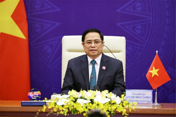 Trong bài phát biểu quan trọng tại phiên họp, Thủ tướng Chính phủ nhấn mạnh quyết tâm của Việt Nam thực hiện “mục tiêu kép” vừa chống dịch, vừa phục hồi kinh tế; đổi mới mô hình tăng trưởng, tái cơ cấu nền kinh tế, phát triển xanh với con người là trung tâm, chủ thể và mục tiêu cao nhất của phát triển, trong đó có phát triển xanh. Tại hội nghị, Thủ tướng bày tỏ lời cảm ơn và mong muốn tiếp tục nhận được sự hỗ trợ, hợp tác hiệu quả hơn nữa của các nước, các tổ chức quốc tế, các doanh nghiệp, nhất là trong các dự án hợp tác phát triển hạ tầng chiến lược chất lượng cao, kinh tế xanh, kinh tế số, kinh tế tuần hoàn thích ứng với BĐKH, phát triển đô thị thông minh... hỗ trợ các mục tiêu phát triển bền vững của Việt Nam.