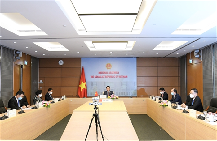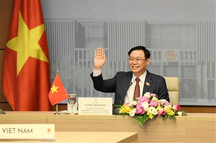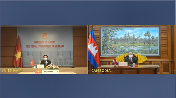Chủ tịch Quốc hội Vương Đình Huệ bày tỏ vui mừng gặp trực tuyến với Chủ tịch Quốc hội Vương quốc Campuchia và các vị đại biểu; khẳng định mong muốn hợp tác chặt chẽ với Samdech Heng Samrin, ngài Thủ tướng Hun Sen và các vị lãnh đạo khác của Campuchia để tiếp tục thúc đẩy và tăng cường mối quan hệ “Láng giềng tốt đẹp, hữu nghị truyền thống, hợp tác toàn diện, bền vững lâu dài” giữa hai nước và Quốc hội hai nước.