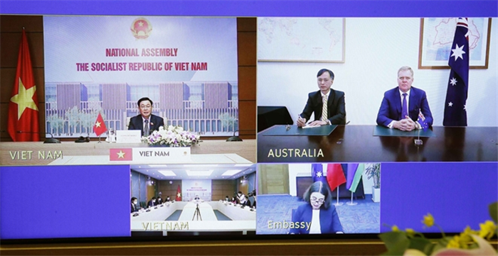 Tham dự buổi hội đàm trực tuyến còn có các quan chức cấp cao của Quốc hội Việt Nam, Hạ viện Australia và Đại sứ của hai quốc gia.